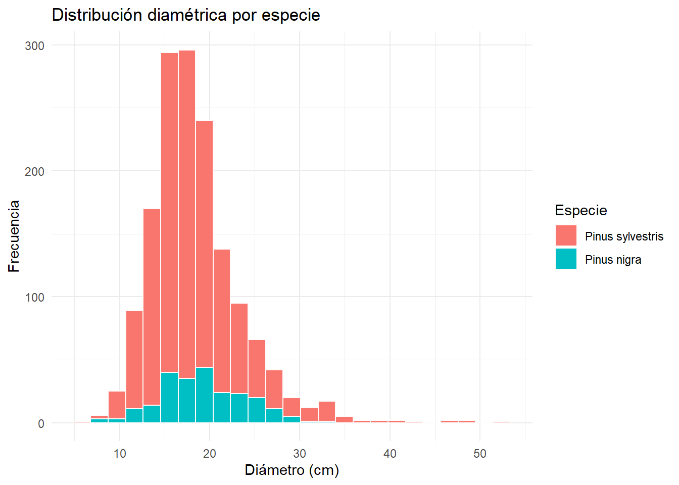 Con scale = "count", vemos que de P. sylvestris tenemos muchos más datos. Si utilizamos scale = "area, esto no lo sabemos. Por lo tanto, es mejor utilizar scale = "count".